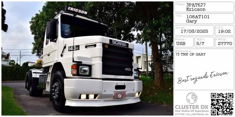 Confirmed contact with Ericson 3PAT627 Curitiba, city, southern Brazil.