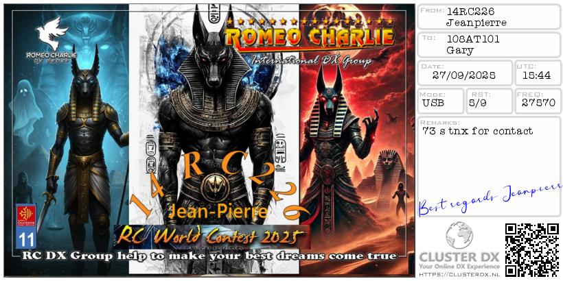 Confirmed contact with Jean-Pierre 14RC226 Occitanie, France.