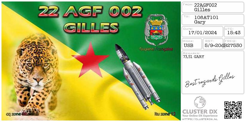 Confirmed contact with Gilles 22AGF022 French Guiana.