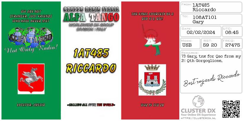 Confirmed contact with Riccardo - 1AT485 Gorgoglione, Italy.