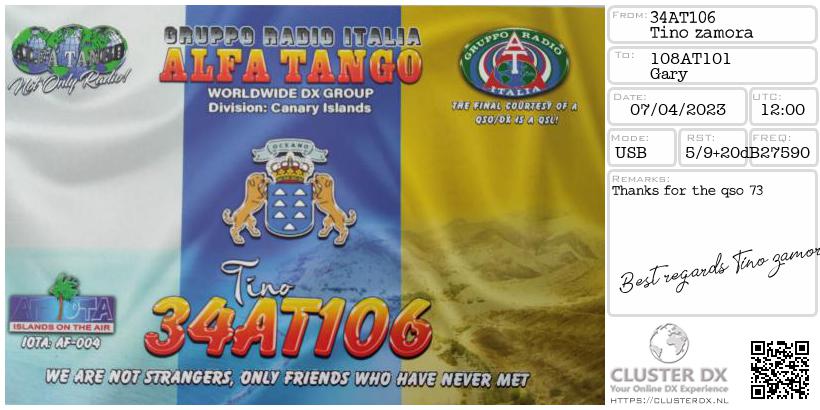 Confirmed contact with Tino 34AT106 S.C. Tenerife, Spain.