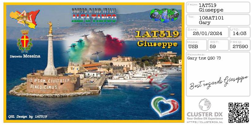 Confirmed contact again with Giuseppe 1AT519 Italy.