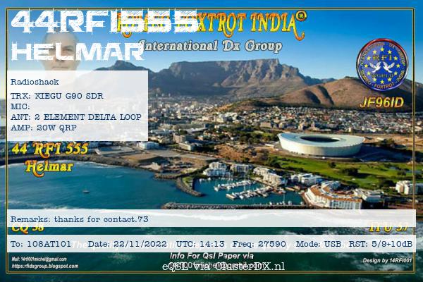 Confirmed contact with Helmar, Western Cape, South Africa, 44RFI555