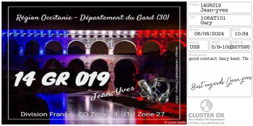 Confirmed contacts with Jean-Yves - 14GR019, France.