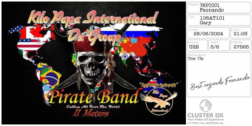 Confirmed contact with Fernando 3KPI001 Amazonas Brazil.