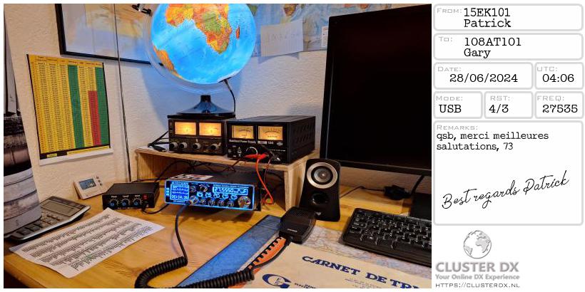 Confirmed contact with Patrick 15EK101 Valais, Switzerland.
