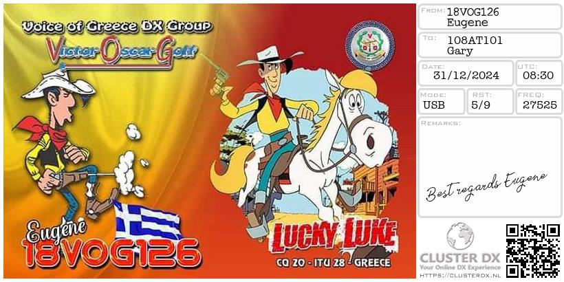 Confirmed contact with Eugene 18VOG126 Athens Greece.