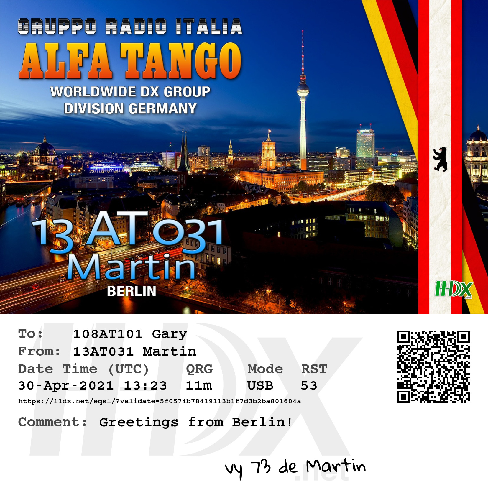 Confirmed contact with Martin 13AT031 Berlin, Germany