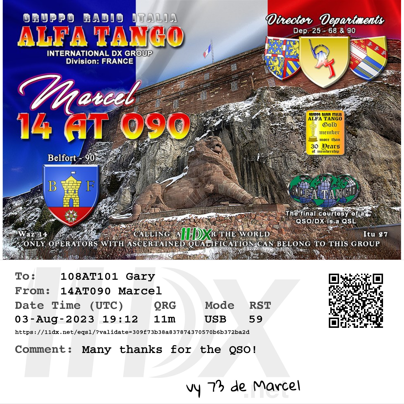 Confirmed contact with Marcel 14AT090 France.
