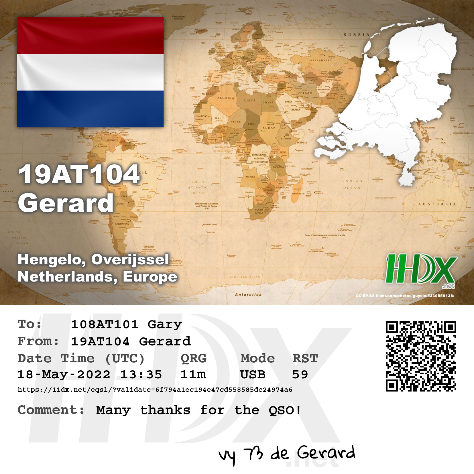 Confirmed contact with Gerard 19AT104 the Netherlands.