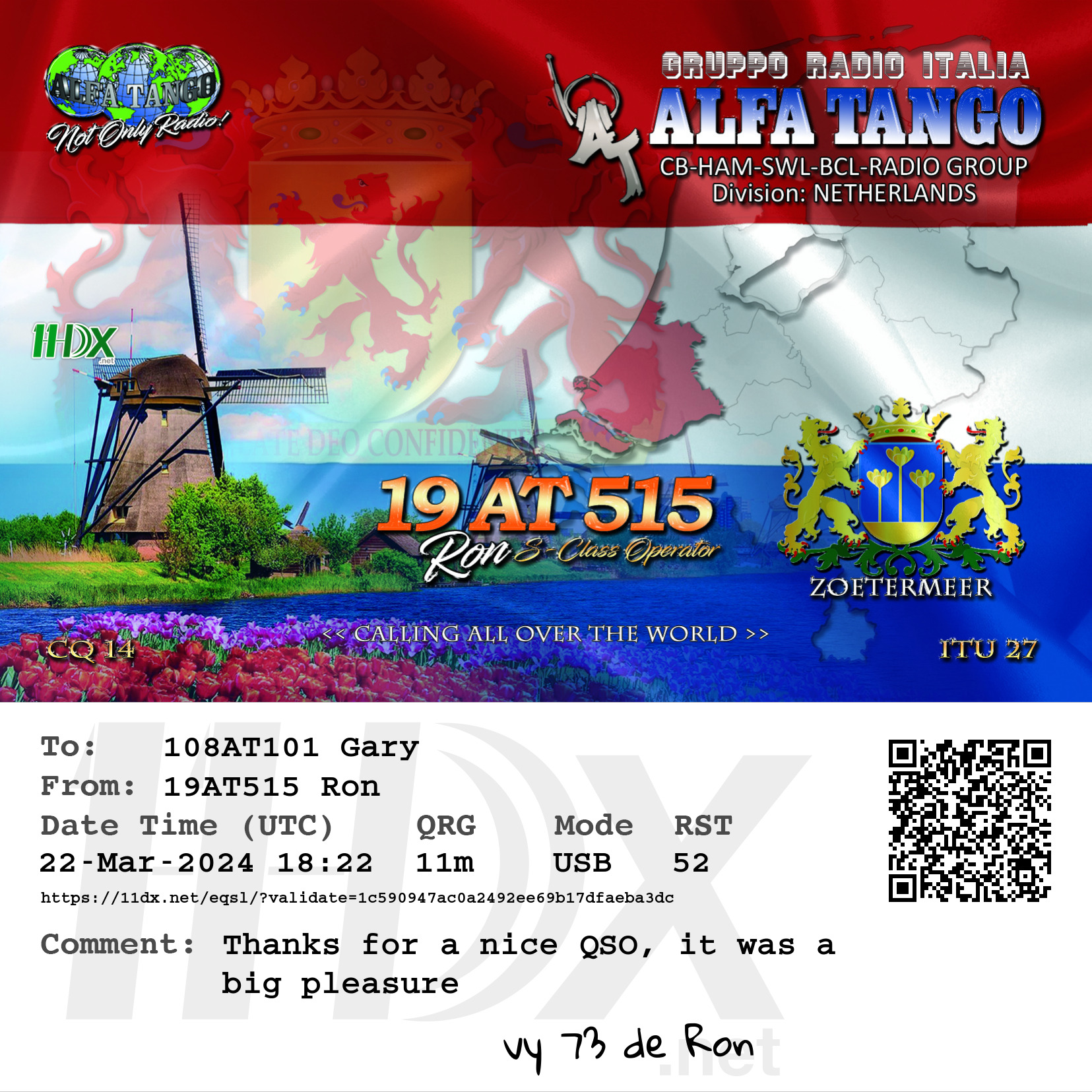 Confirmed contact with Ron 19AT515 the Netherlands.