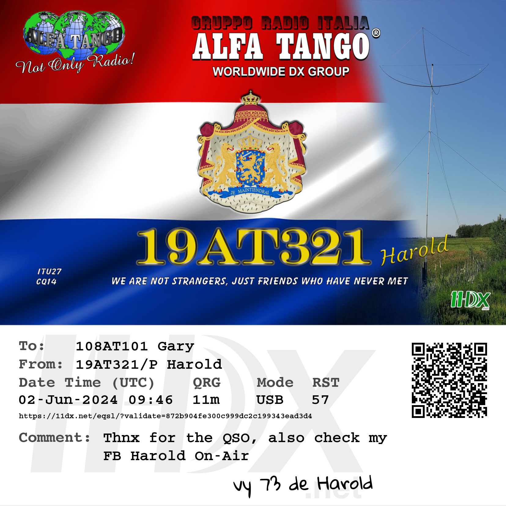 Confirmed contact with Harold 19AT321 the Netherlands.