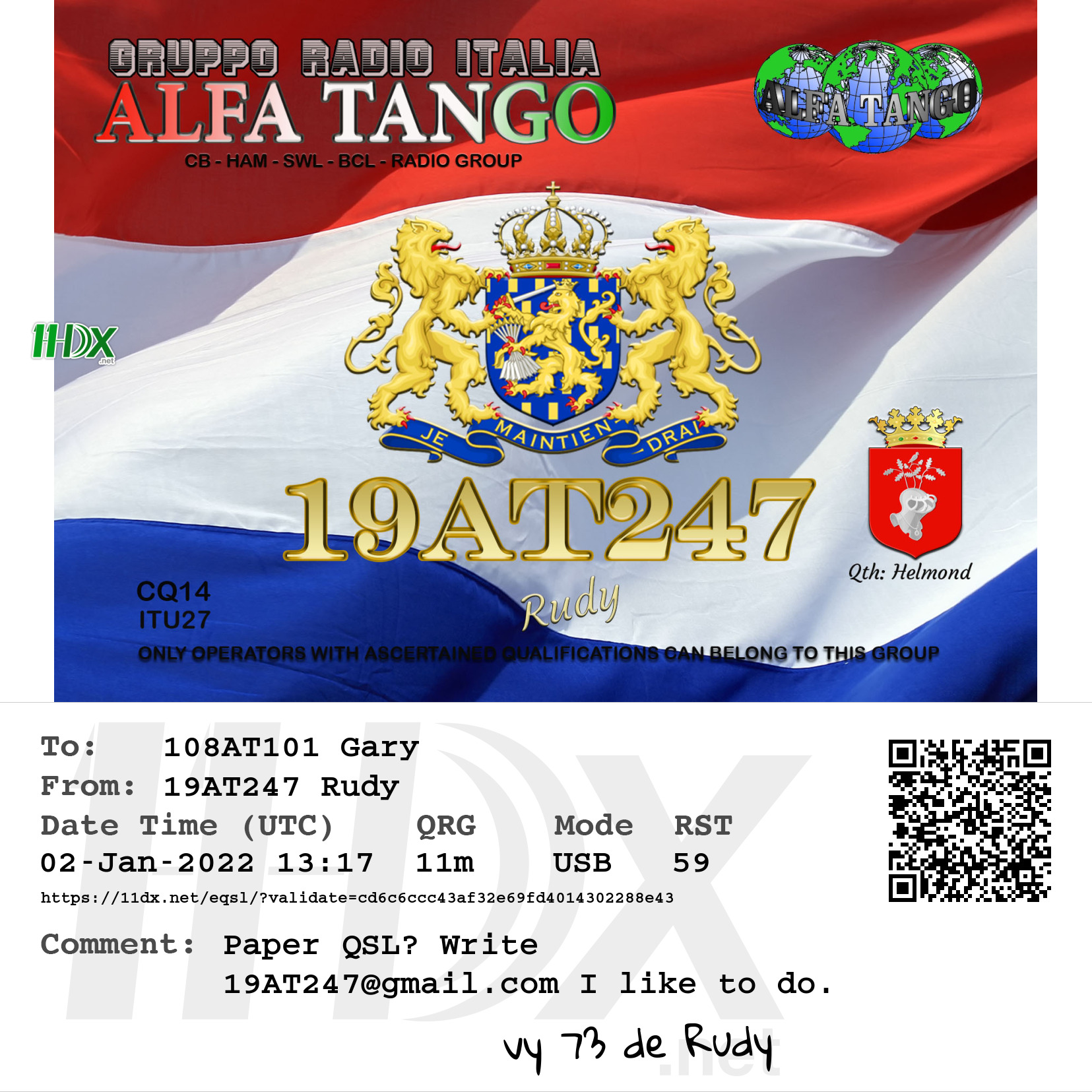 Confirmed contact with Rudy 19AT247 the Netherlands.