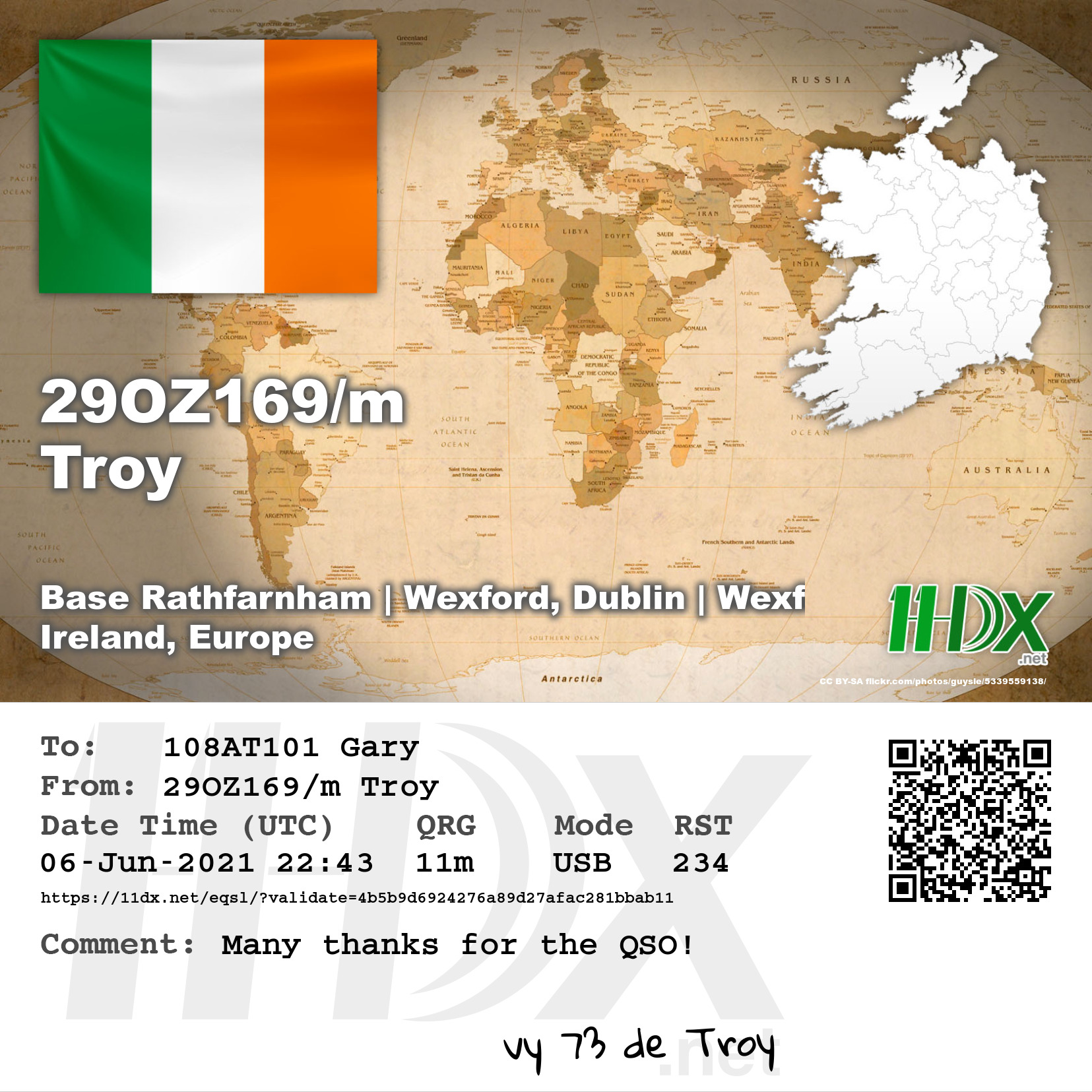 Confirmed mobile contact with Troy 29OZ169 Ireland.