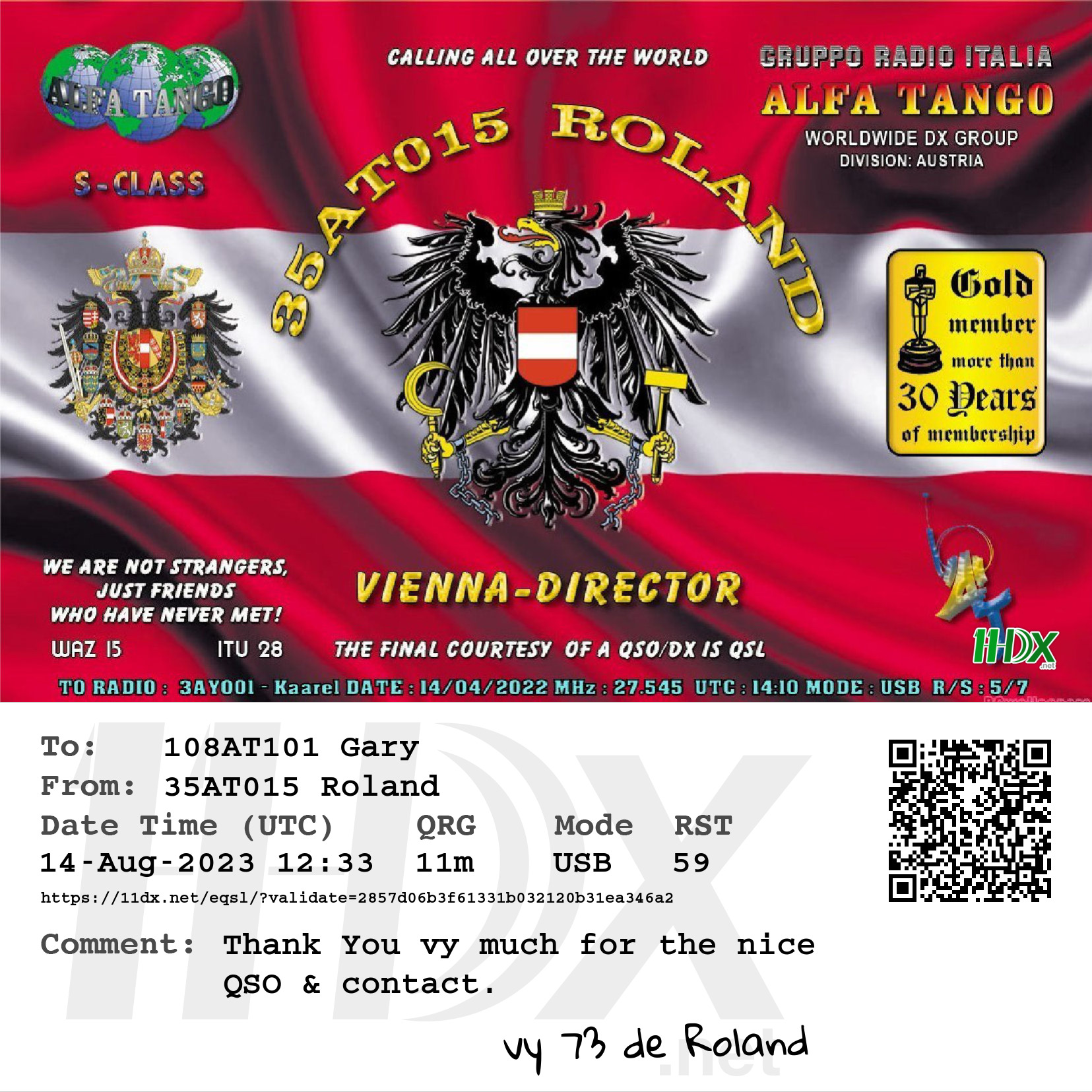 Confirmed contact with Roland 35AT015 Vienna - Director Austria.